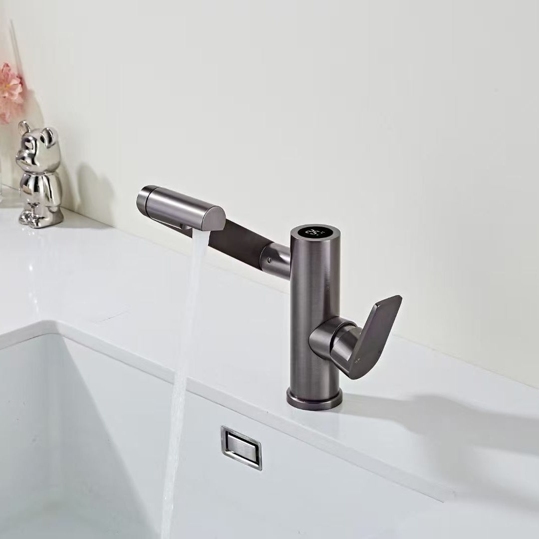 Spout Length: 196 mm, Nozzle Length: 83 mm, Faucet Height: 114.7 mm, Base Diameter: 54 mm, Mounting Type: Single-hole deck mount, Rotation: 360° multi-directional. |