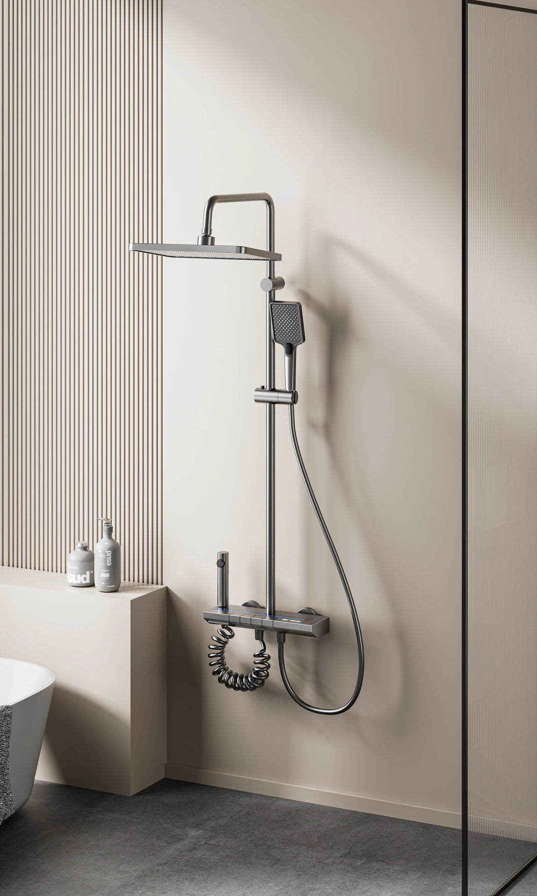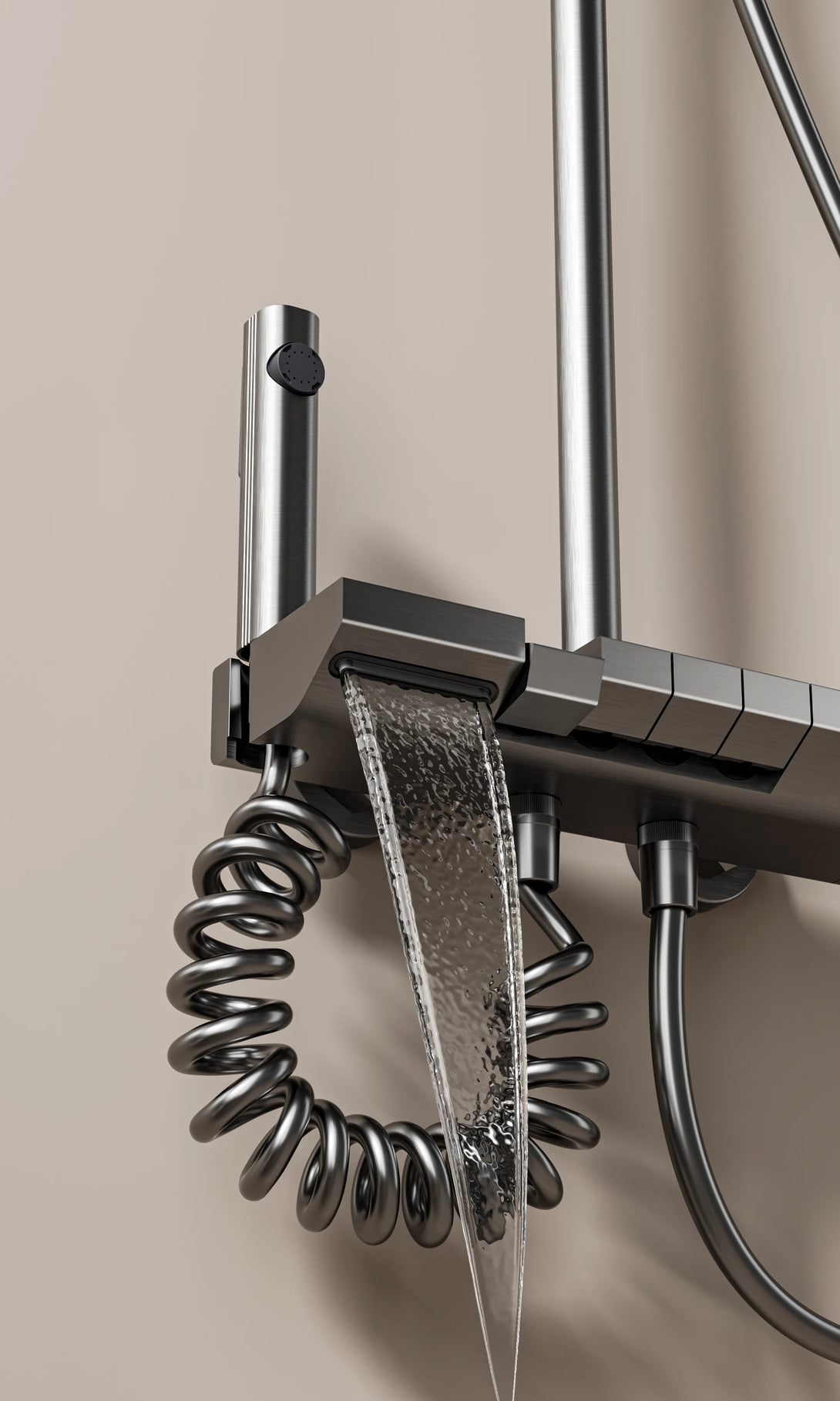 Rainfall, waterfall, power spray, and handheld sprayer for all daily needs.